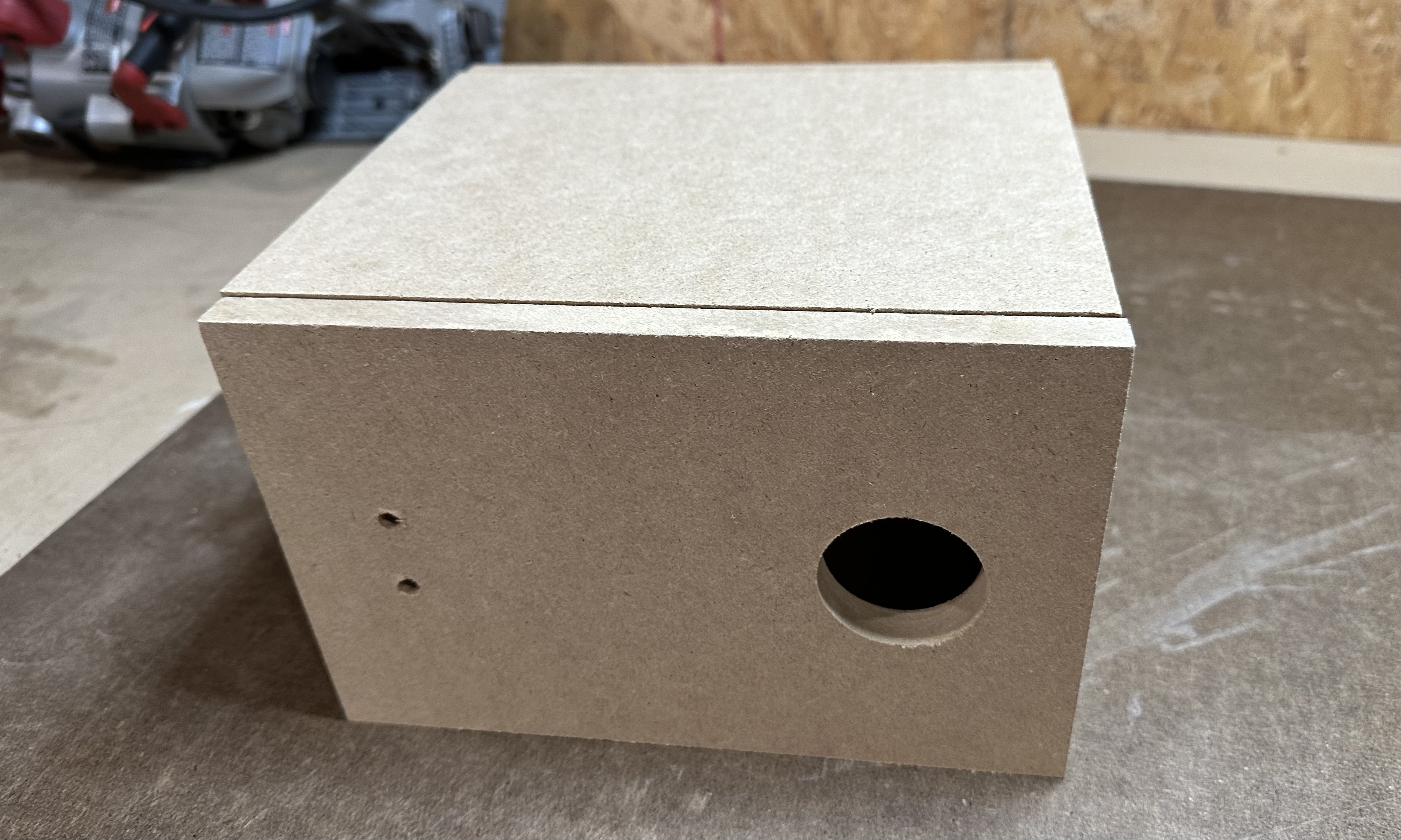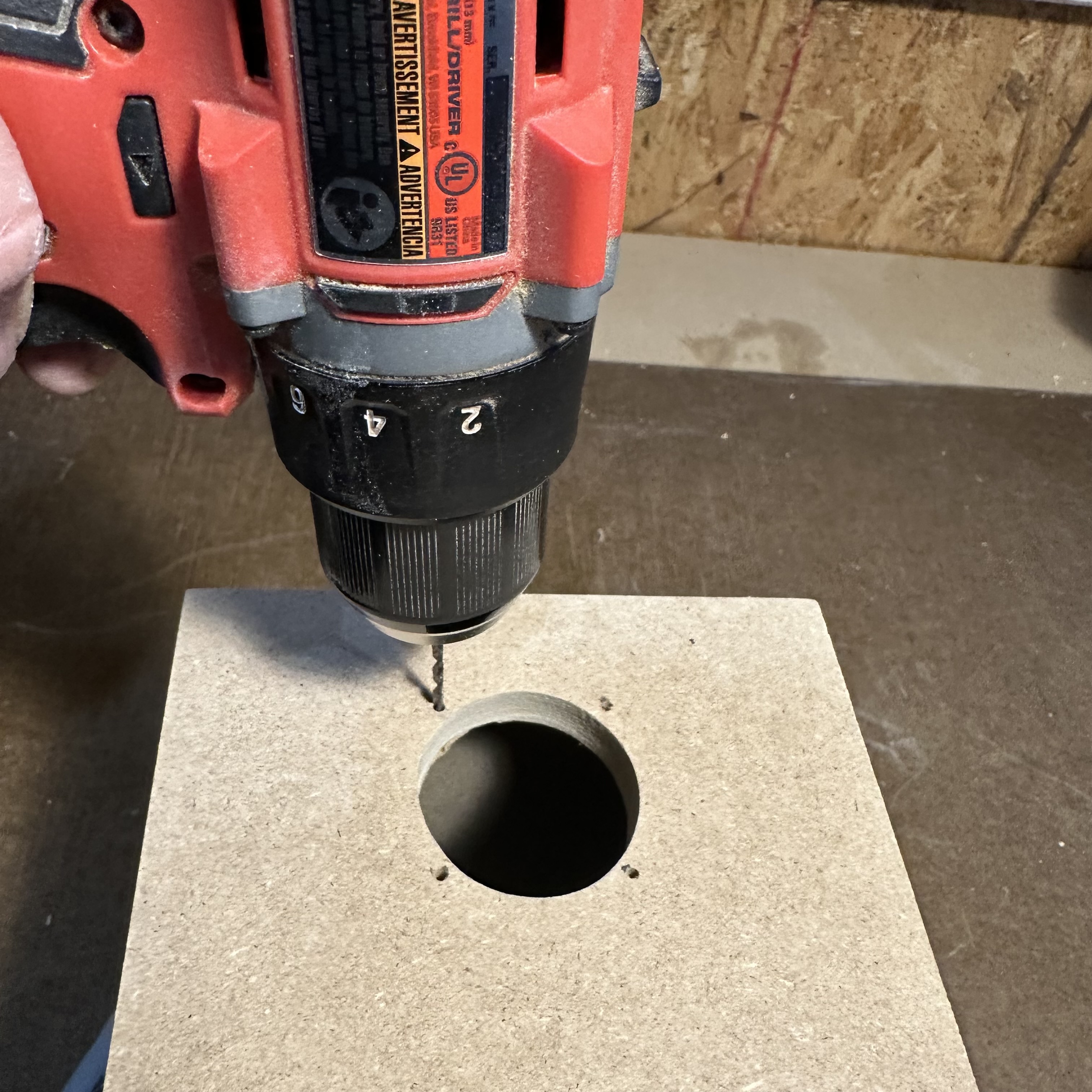 - Drill pilot holes in the marked locations for the mid-range and port tube using a small bit, maybe 3/32 or 5/64.