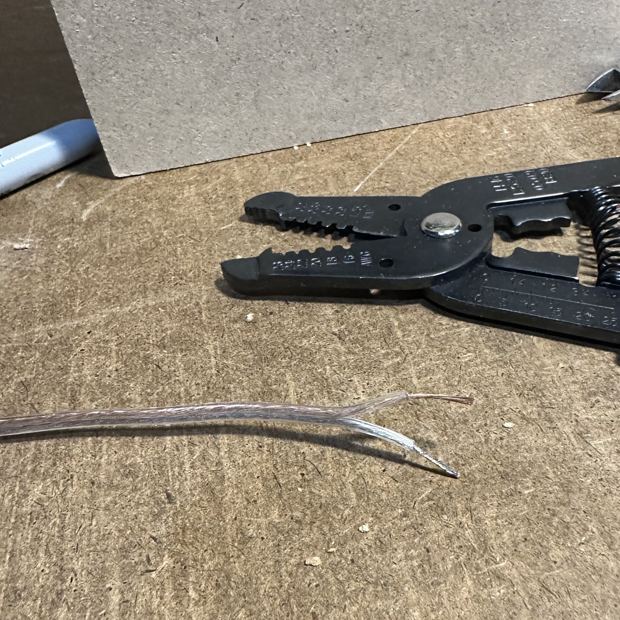 - Use wire cutters (Or a knife, but be careful!) to split the ends of the speaker wire. Peel the two wires apart an inch or so. Then use wire strippers to remove about a half-inch of insulation from each wire.