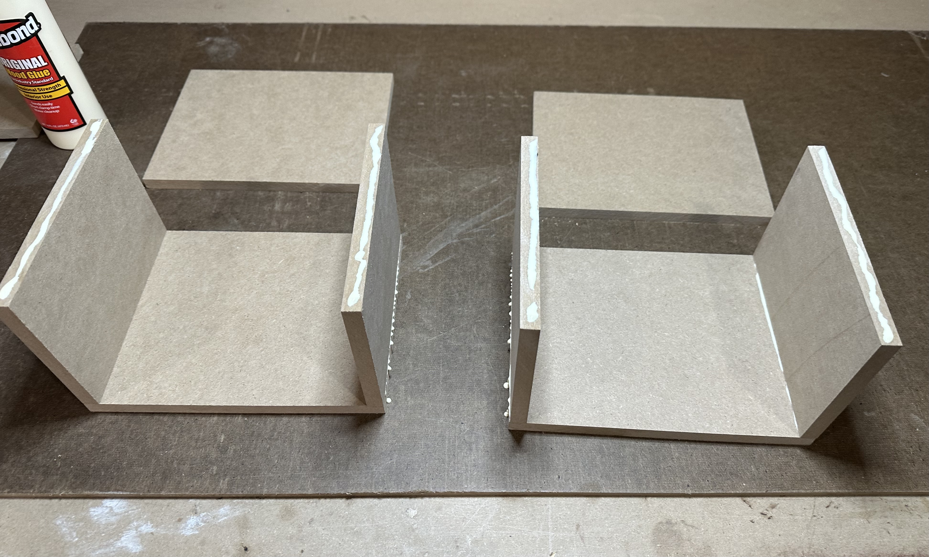 - Apply thin beads of the glue to the upper edges of two panels that are sitting vertically.