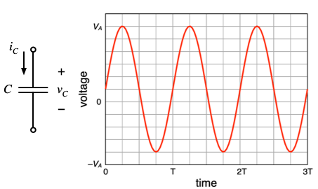 vC(t) = VA·sin ωt, where VA = 20 V and ω = 1 Mrad/sec.