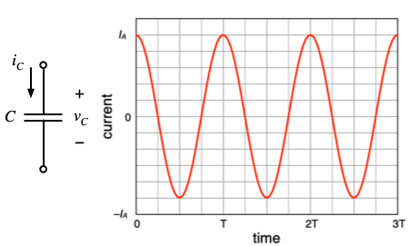 iC(t) = IA·cos ωt, where IA = 0.8 mA and ω = 1 Mrad/sec.